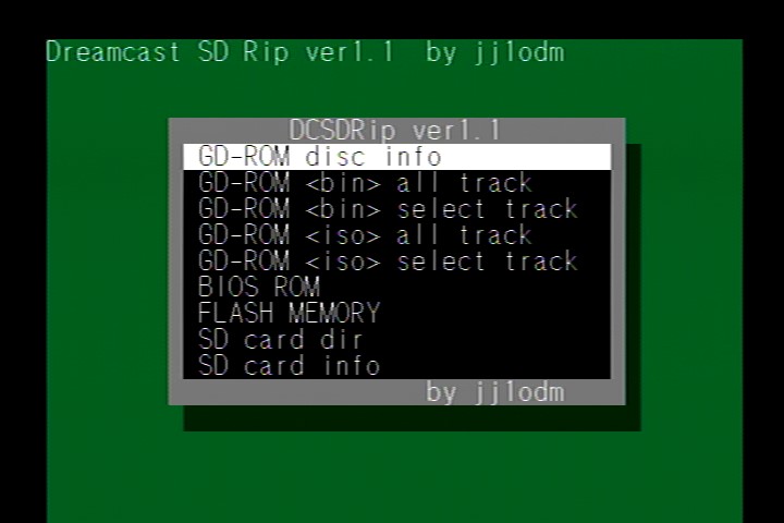 今回は、 Dreamcast SD Rip ver1.1 をドリームキャスト本体で読んでみたいと思います。ドリームキャストのSDカードアダプターが必要なので、アマゾン等で用意してください。焼いたCDをドリームキャストにセットして電源を入れてください。前回の記事はこちら