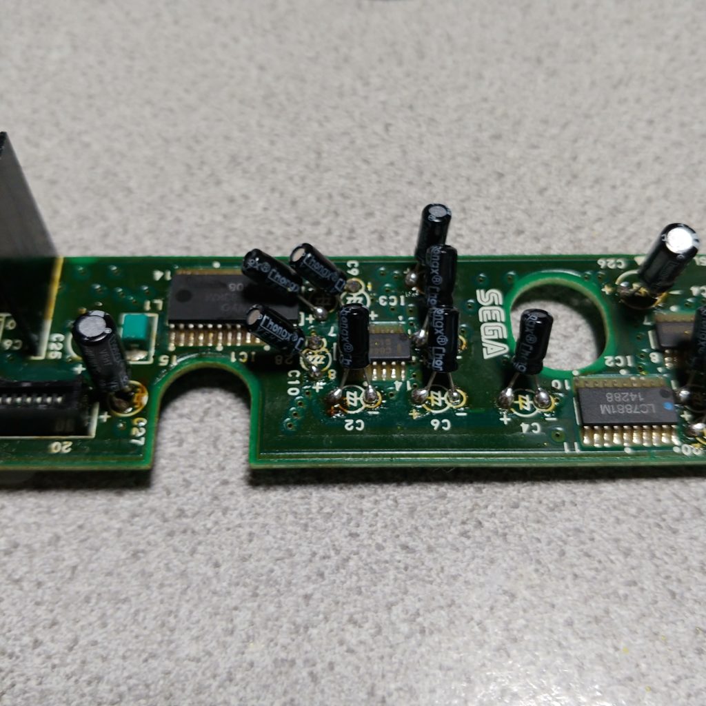 メガCDも発売からだいぶたっているので、電解コンデンサは寿命を迎えている実機が殆どです。今回は、メガCDの電解コンデンサ交換をしてみたいと思います。メガCDには、何種類かVerがあるみたいですが、今回は私の手持ちのメガCDについて解説します。