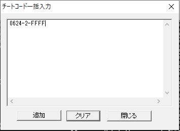 「0624」の部分がアドレスになります。「2」が2BYTEデータと言う意味です。「FFFF」は65535と言う意味です。このコードは、所持ゴールドを65535Gにするチートコードです。アドレスは、慣れれば検索して好きなパラメータをいじることもできます。
