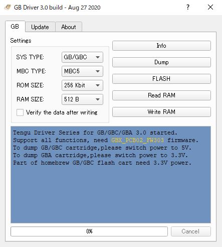 レトロベースダンパーとPCをUSBケーブルで接続して、クライアントソフトを起動します。2020年12月現在では、gb3_full_win_20200827が最新のソフトです。