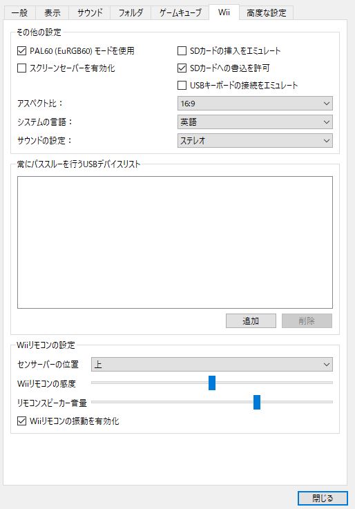 設定の所でWiiを選択すれば、感度などを設定できます。