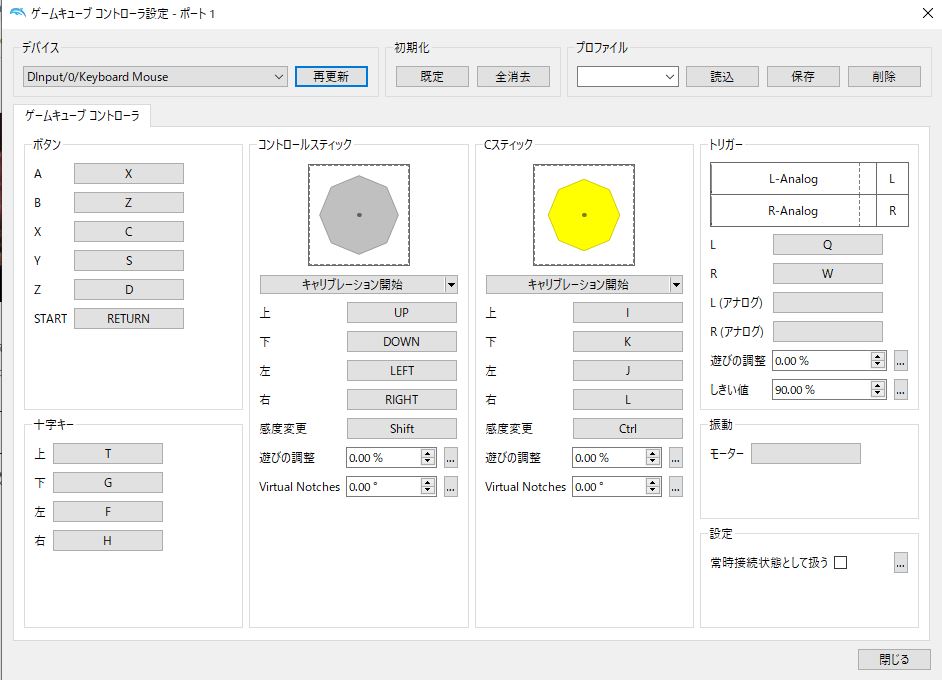 ゲームキューブのコントローラ設定