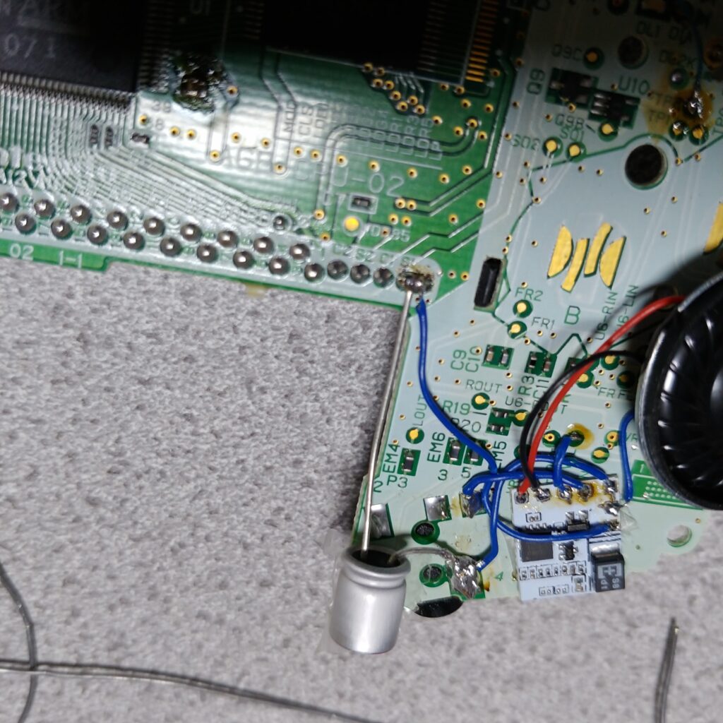 結構、ゲームボーイアドバンスの部品は小さいので目がきつかったです。では、改造後の写真はこんな感じです。