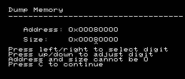 Dump Memoryを選びます。決定はAボタン、CボタンでキャンセルBボタンです。