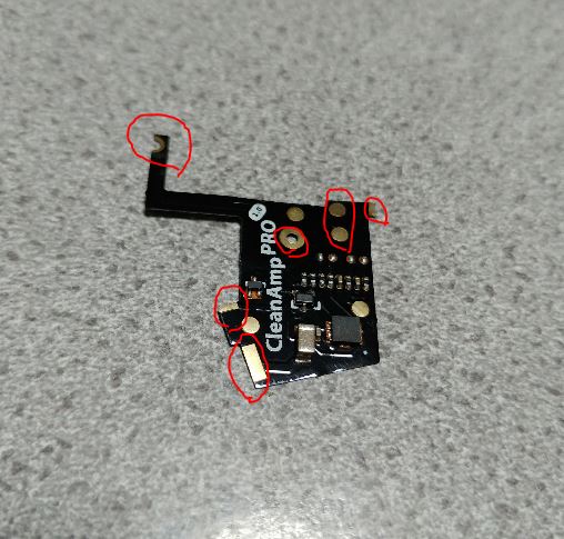 はんだ付けする箇所は、下記の写真の赤丸の所をはんだ付けすればOKです。上の写真と合わせてみればわかると思います。