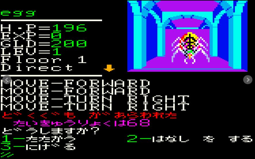 国産RPGとしては黎明期の作品ではありますが、3Dの移動時には背景が進むようにズルッとアニメーションしたり、アイテムに耐久力が設定されていたりと、今でも見られるような要素をいち早く表現しています。シンプルながらも3DダンジョンRPGの基本を抑えた本作、国産RPGを語るなら、おさえておきたいタイトルといえるでしょう。