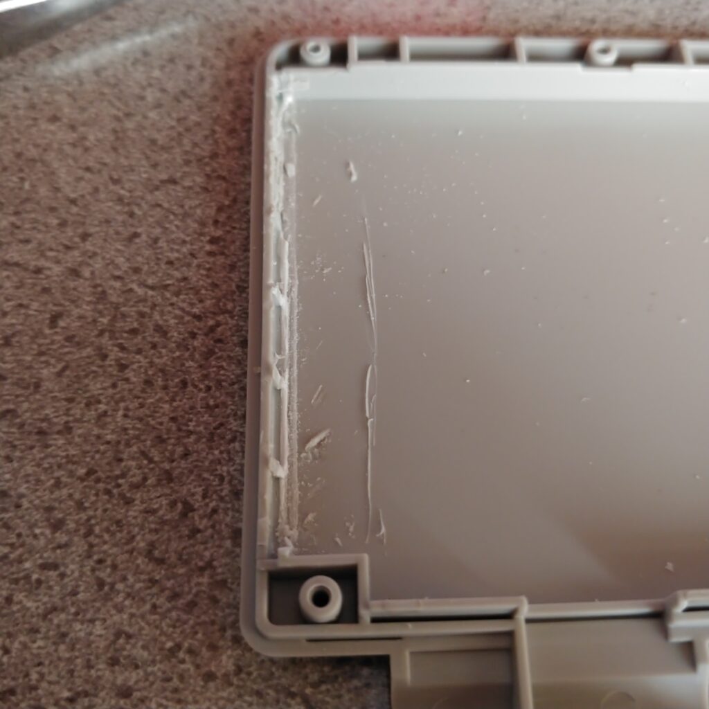 ニッパーとカッターで綺麗に取りましたが、多少傷ついてしまいました。内側なので気にしませんが…