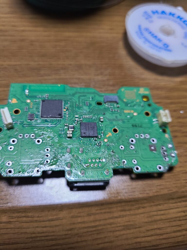 フラックスクリーナーとはんだ吸い取り線で、基板を綺麗にしたらアナログスティックをはんだ付けします。